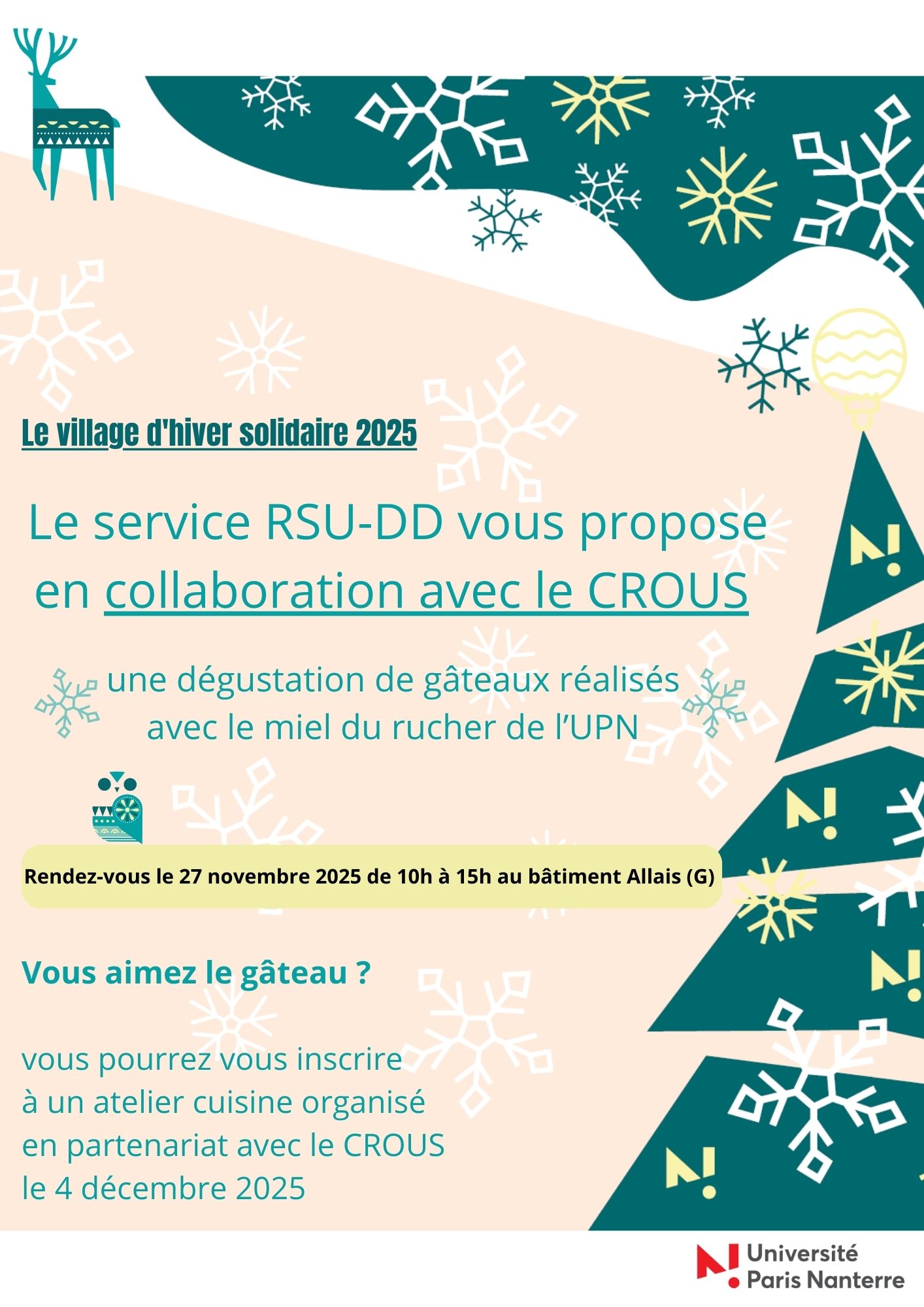 En cette période de fêtes, le service RSU-DD vous propose de (re)découvrir le miel de l’Université à travers de délicieux gâteaux confectionnés par les cuisiniers du CROUS. Réalisés avec le miel issu du rucher universitaire, ces douceurs gourmandes sauront ravir vos papilles !