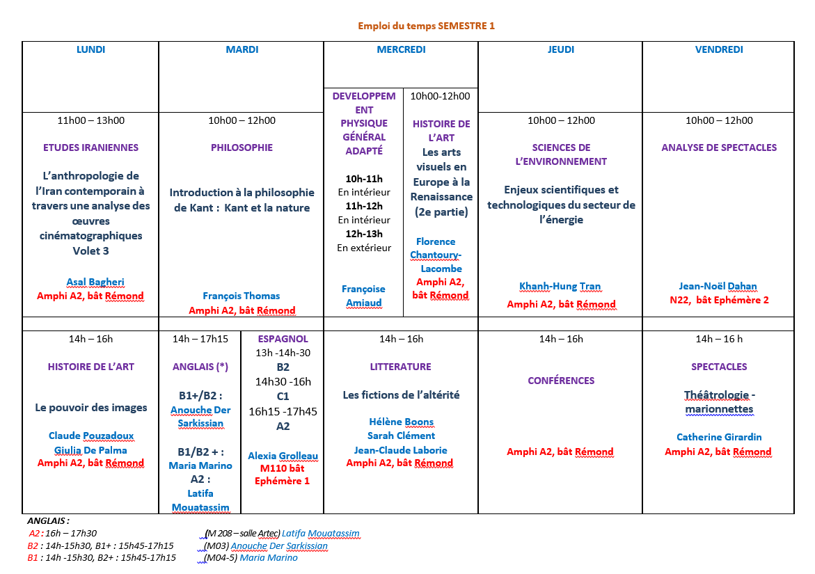 -Le cours Anglais B2 au S1 et au S2.