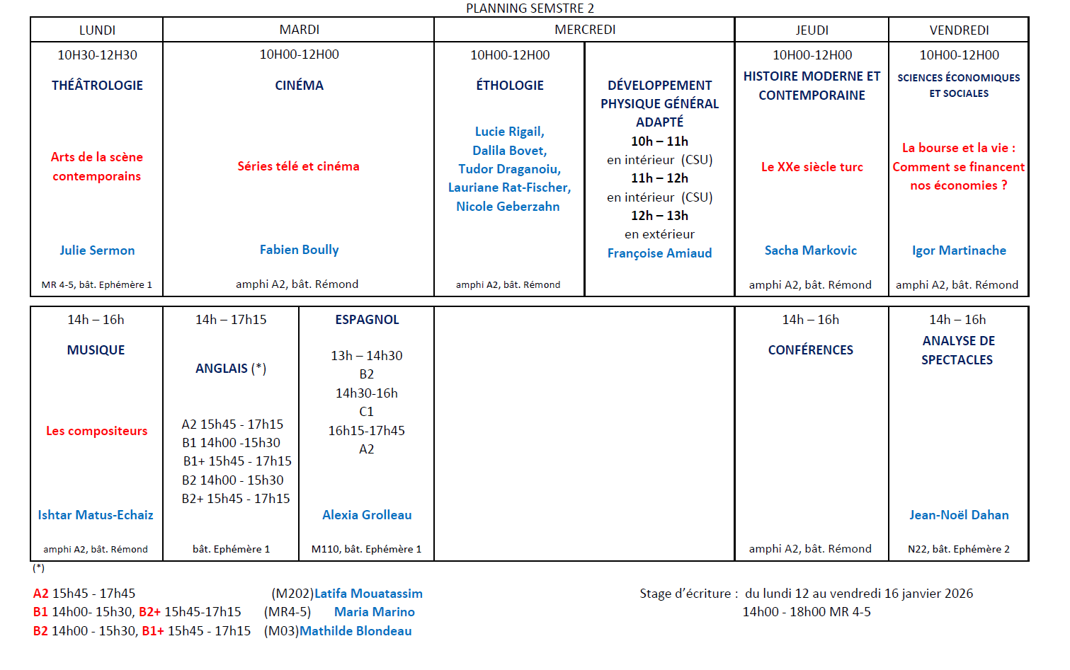 L'inscription pour les enseignements du semestre 2 est possible jusqu'au 23 janvier 2026.